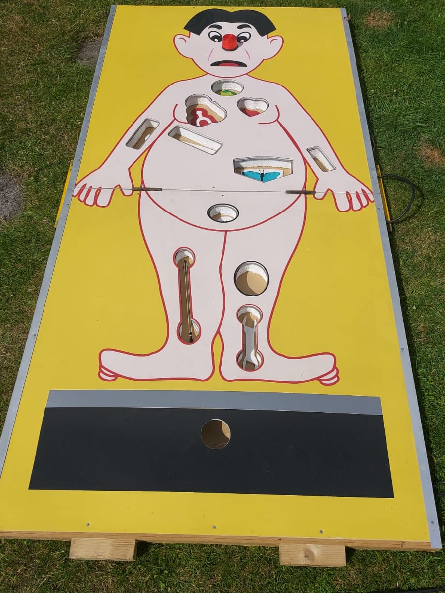 The Giant operation game is a modern twist on an old school favourite game "Operation" and is a fantastic way to draw in additional visitors to your event, fete, fair, school gala, pub, club, shopping centre or simply for a bit of light-hearted fun at a private party event or birthday bash. It's a fantastic challenge game and can be extremely competitive for all involved. Do you still have a steady hand?