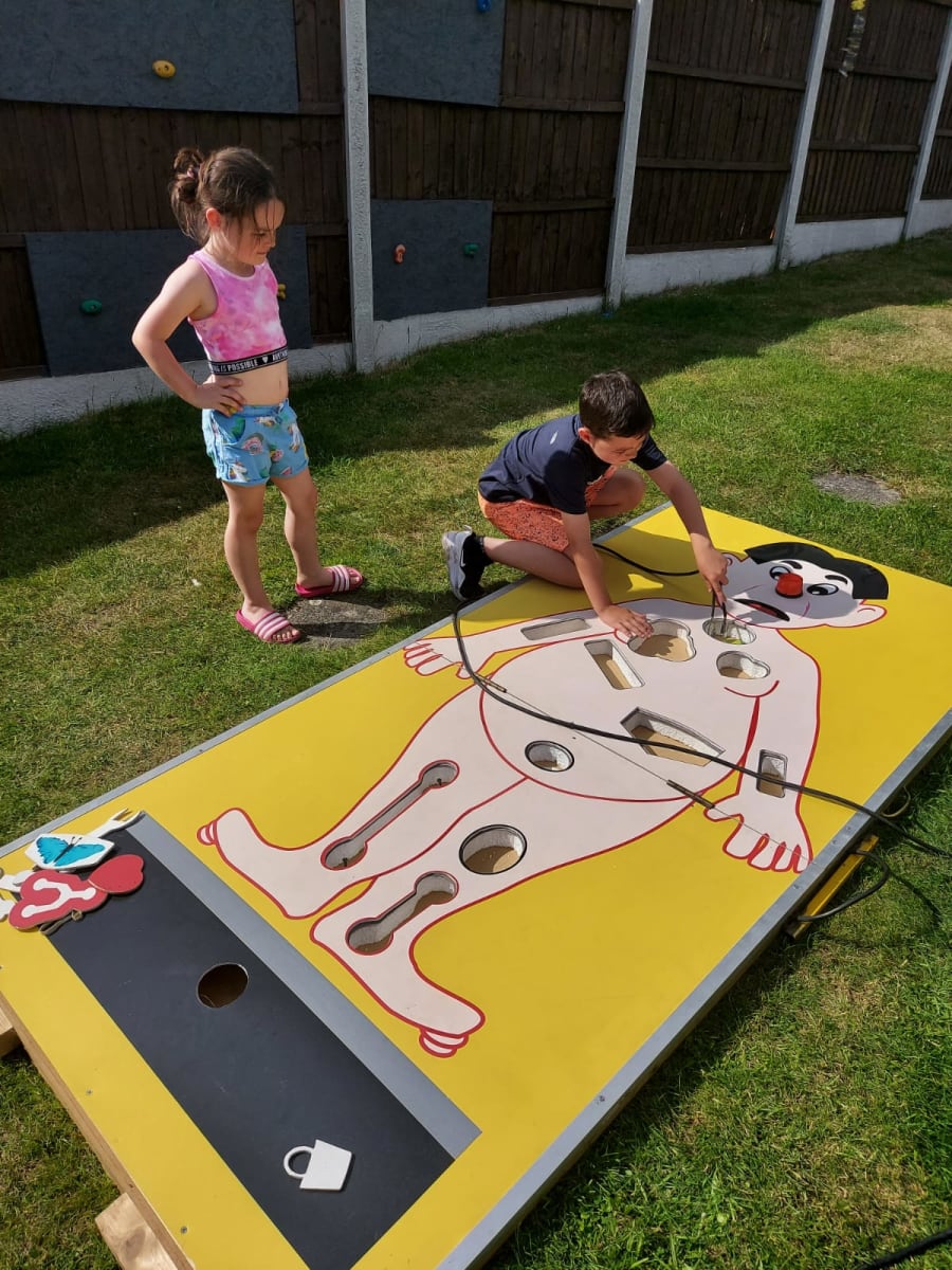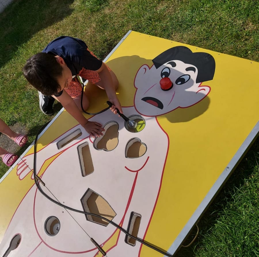 The Giant operation game is a modern twist on an old school favourite game "Operation" and is a fantastic way to draw in additional visitors to your event, fete, fair, school gala, pub, club, shopping centre or simply for a bit of light-hearted fun at a private party event or birthday bash. It's a fantastic challenge game and can be extremely competitive for all involved. Do you still have a steady hand?